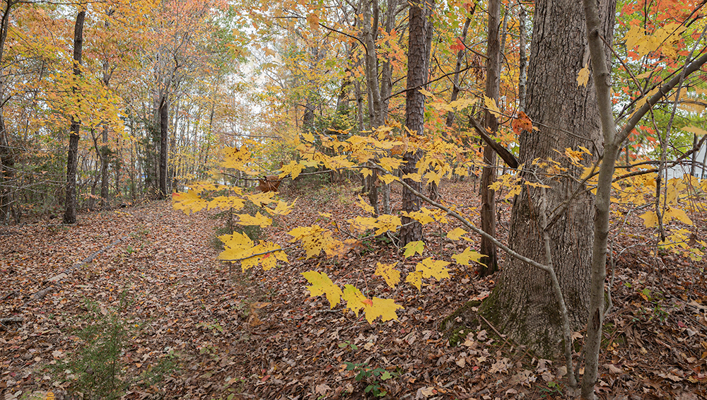 The 22-Acre Woods are, for all practical purposes, my private preserve-- for which I pay no taxes or have any liability. My wife and I own a quarter-acre lot nestled into the northwest corner of our subdivision, which is also the southwest corner of the 22-Acre Woods (And I am the only one who refers to the small tract of trees in this way). There are roughly 800 people in our development, and we may see a dozen of them-- generally the same dozen, mostly teenagers-- walking (or biking) through the woods in a given week. I am the only one I have ever seen with a camera in the woods. They are owned by a family of six or so elderly children who can't find a buyer for the property because it is landlocked with one access point in and out, and it is a drainage area for rainwater on its way to the sea. There are more attractive parcels close-by for developers to choose, and I relish each day without a bulldozer in it. I can walk out our back door, or our front door, and be in the woods as quickly as I can check the mail. They are a wonderful mixture of hardwoods and pine. The deer have moved out due to encroaching construction, but small animals and snakes and a pair of red-shouldered hawks are holding out for as long as luck allows. I am two weeks away from stepping into my 77th year, and osteoarthritis in both knees-- and COVID-19-- keep me from traveling to photo-worthy sites more than two hours away, and make the 22-Acre Woods my primary source for scenes. Access is always the first rule of photography. Without access, a camera is worthless regardless of what it costs, and the 22-Acre Woods are always accessible-- until the bulldozers arrive and begin doing their thing. So, I welcome another fall, and the daily opportunity to go for a walk in the woods. With a camera in hand.