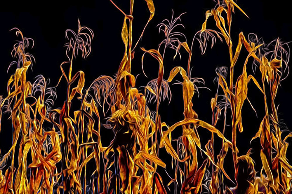 October Corn Oil Paint Rendered — Great Smoky Mountains National Park, Oconaluftee Visitor’s Center Farm, Cherokee, North Carolina