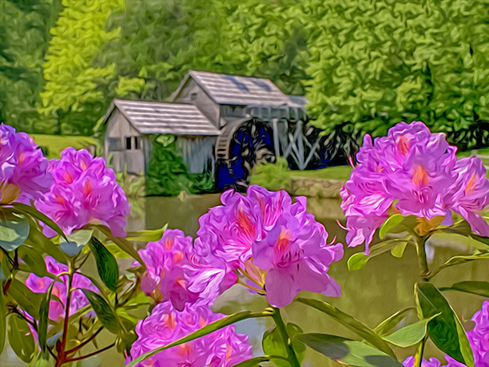 Rhododendron at Mabry Mill 05/23/2007 Oil Paint Rendered — Blue Ridge Parkway, Meadows of Dan, North Carolina