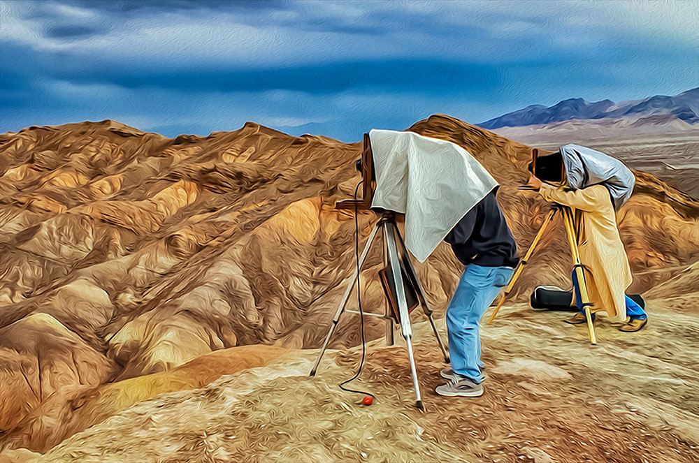 Death Valley Photographers 03/23/2006 Oil Paint Rendered — Phil Kimber and Friend, Zabriskie Point, California