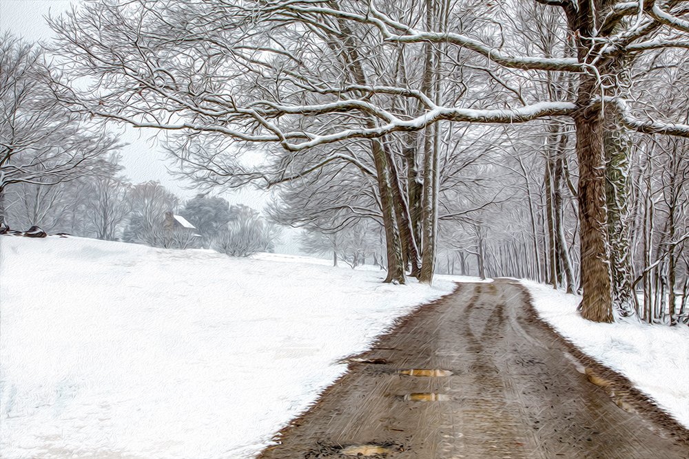 Road Through Snow 02/11/2014 Oil Paint Rendered — Anne Springs Close Greenway, Fort Mill, South Carolina