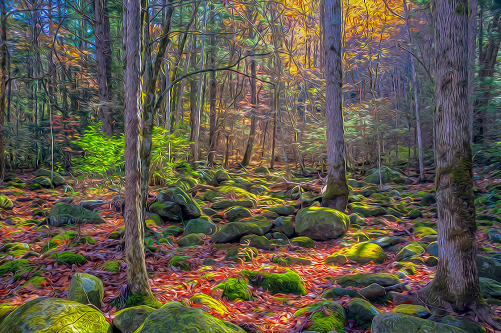 When people ask, "Jim, what is with your fascination with the Oil Paint Filter in Photoshop?" I tell them, "I like the hint of magic it gives to a scene. We are never more than a perspective shift away from seeing the world within the world, beyond the world. Magic/Mystic/Mystical/Mysterious/Spiritual is always "right here, right now," and we walk "right past" it, only seeing the world we have always seen. The Oil Paint Filter forces a 'wait-a-minute!' on the lemming parade in its rush to the sea, and people have to look again, maybe seeing, maybe not, but looking. And that's the most I can hope for, that people snap awake enough to look at what they are seeing, and perhaps they see what they are looking at." So the Oil Paint Filter is my attempt at opening a door. Whether anyone walks through or not is their business. The same goes for writing these little free verse whatnot's accompanying the images. People may not read them, people may read them and not comprehend them, people may read them and shift their perspective. The perspective shift is our only hope at seeing the Magic/Mystic/Mystical/Mysterious/Spiritual everywhere, and participating in it through the way we align ourselves with it in living our life. Maybe yes, maybe no. I open doors, or, to use a different door analogy, I put my foot like a doorstop between the door and the door frame to keep the door from closing, letting a little light shine in. Whether anybody goes to the trouble of having a perspective shift or not is their business. I'm here to do what I do best-- just like you are here to do what you do best-- and let that be that. If anything comes of it, fine. If nothing comes of it, fine. We did our best, and left it at that. We don't have time to worry about it-- that would get in the way of our doing our best! Not that it matters. And here is the thing about that. It doesn't matter if it matters or not, what we do. We are here to do it! "Without hope, without witness, without reward!" (Steven Moffat, Doctor Who). We are here to do what needs to be done whether it does any good or not. We are here to be good for nothing in this way. Do what you do and let it go. "Get in there and do your thing, and don't worry about the outcome" (Joseph Campbell's summation of the Bahgavad Gita). Look for something that needs to be done and go do it, with the gifts/daemon/genius of your original nature. No matter what. Throughout the time left for living!