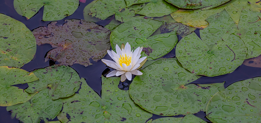 "Om mani padme hum" is a Buddhist chant that can be translated, "The jewel is in the Lotus," with the implied second verse always in the background like an embarrassing uncle, "and the Lotus is in the slime." That would be the slime at the bottom of the pond. suggested in the above image by the lily pads well past prime. The dichotomy is not to be missed, on several levels. There is the Buddhist denial of all dichotomy in its insistence that all is one, while being grounded in the very dichotomy it despises. "Life is suffering" and suffering is the foundation of the Buddhist rail against suffering in the Four Noble Truths and the Eight-Fold-Path. Suffering doesn't exist as a duality to Nirvana, but where would we be without it? The Jewel of Enlightenment and the Slime of Unknowing/Ignorance/Denial are two partners in one dance through time and space. "The Jewel is in the Lotus" is another way of saying, "Life Eats Life," or "Yin/Yang," reminding us that what we seek is grounded in who we are, and we cannot escape ourselves by being different from who we are. We are one because we are two. Or more. And because we are two, or more, we seek a steady state of the bliss of oneness. The Jewel is in the Lotus the way we are One Now, by being conscious of who we are and also are and allowing that to be who we are. Using the strengths of our "other sides" to deepen/expand/enlarge us and our capacity for compassion, kindness and grace for all people because we know "Thou Art That" and therefore "Namaste," "I bow to you." "All of me bows to all of you." We are one, and we all are one, in our otherness. Realizing it makes it so. May it be so.