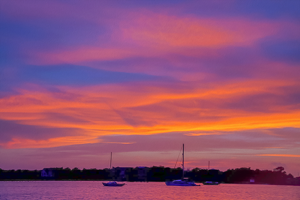 Sunset, Silver Lake 03 10/26/2010 Oil Paint Rendered — Ocracoke Island, Cape Hatteras National Seashore, Outer Banks, North Carolina