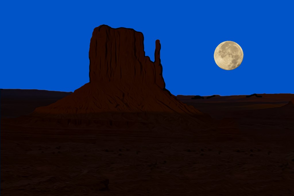 Left Mitten Moon Rise 09/25/2007 Oil Paint Rendered — Monument Valley Navajo Tribal Park, Arizona
