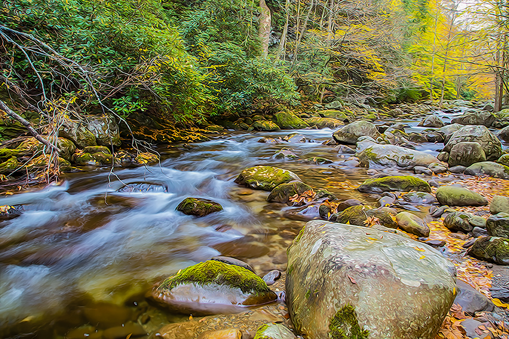 Baxter Creek 01 10/30/2014 Oil Paint Rendered — Great Smoky Mountains National Park, Big Creek District, Waterville, North Carolina