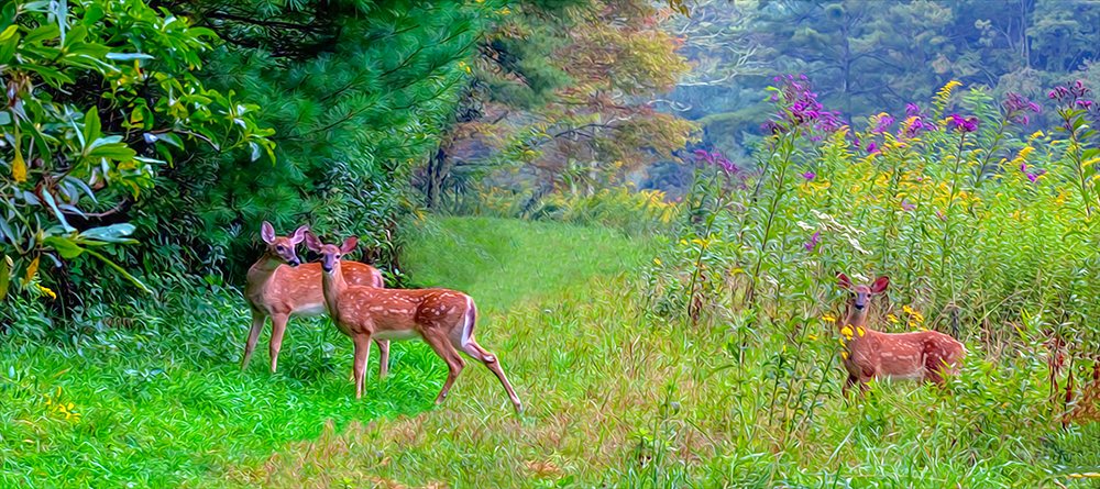 Three Fawns 09/11/2009 Oil Paint Rendered — Bass Lake, Blue Ridge Parkway, Blowing Rock, North Carolina