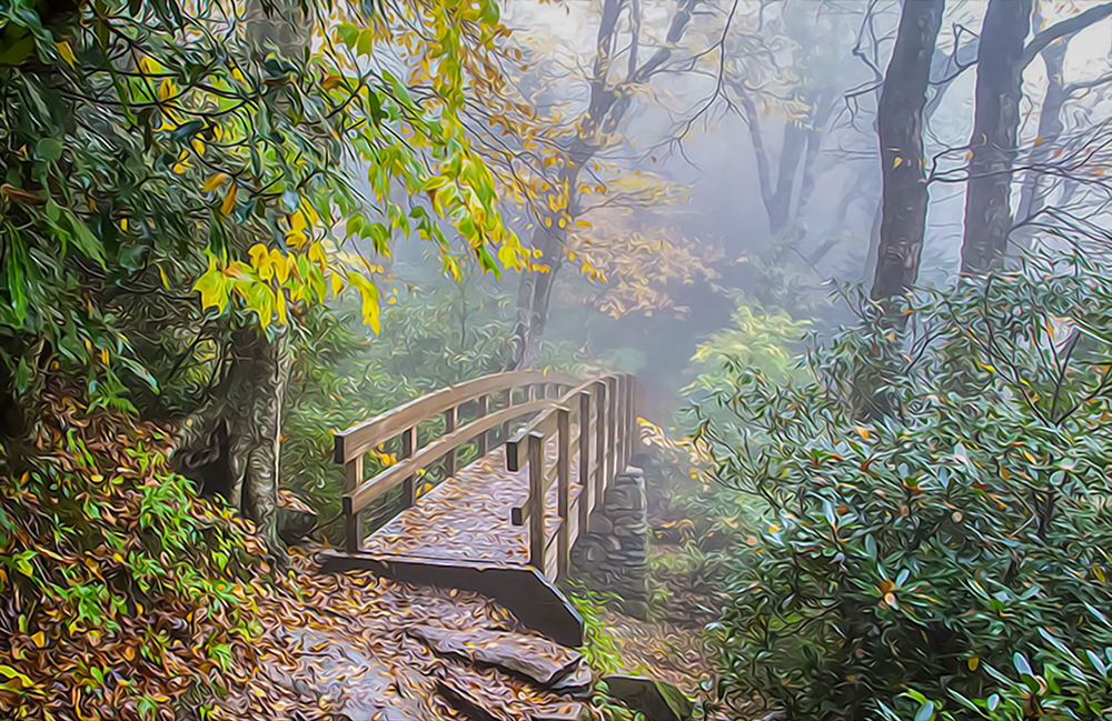 Bridge to Rough Ridge 03 10/13/2014 Oil Paint Rendered — Blue Ridge Parkway, Blowing Rock, North Carolina