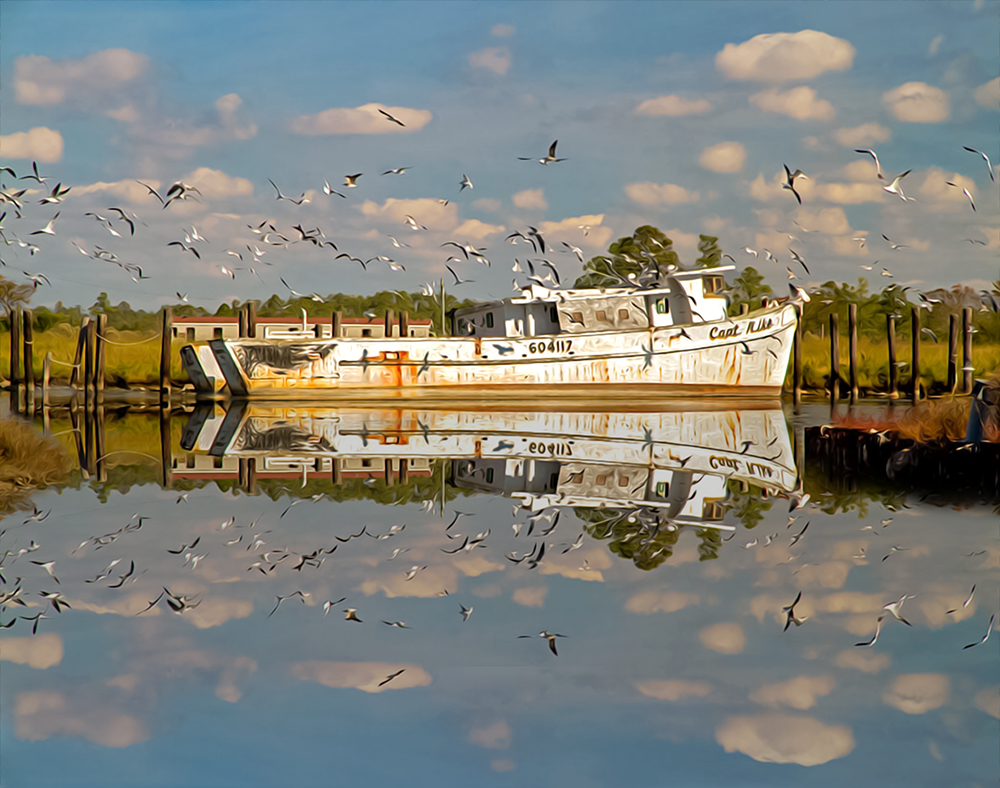 Englehard Mooring Reflection 10/30/2010 Oil Paint Rendered — The Outer Banks, North Carolina