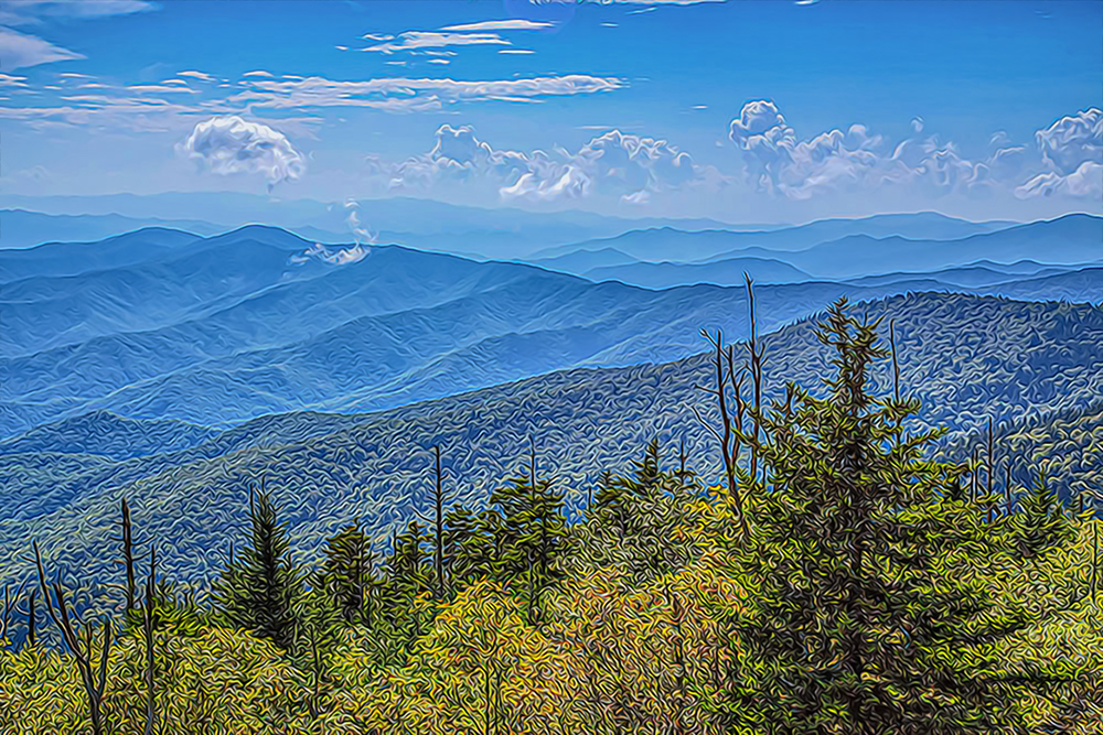 View from Clingman/s Dome Parking Area 01 09/01/2014 Oil Paint Rendered — Great Smoky Mountains National Park, Cherokee, North Carolina