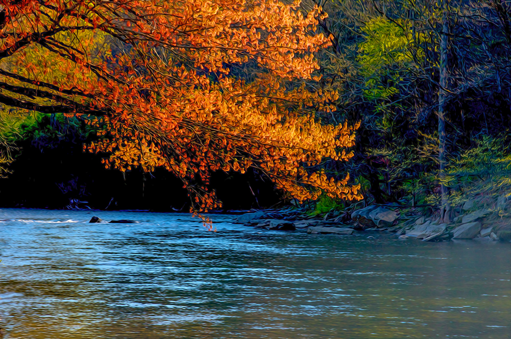 Spring on the River 04/05/2008 Oil Paint Rendered — Oconaluftee River, Cherokee, North Carolina