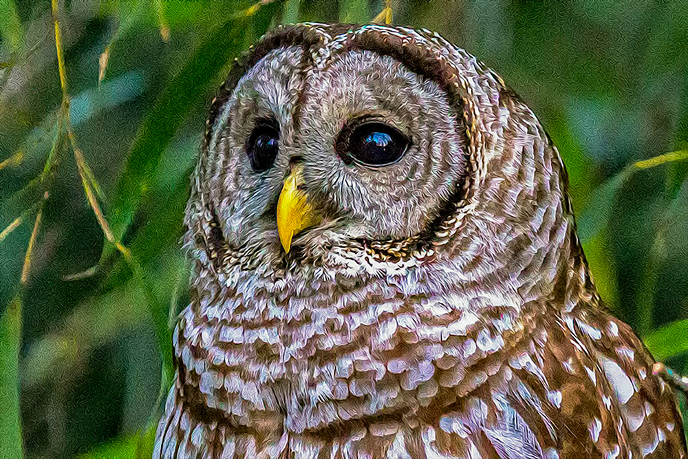 Barred Owl 01 04/09/2013 Oil Paint Rendered — The Bog Garden, Greensboro, North Carolina