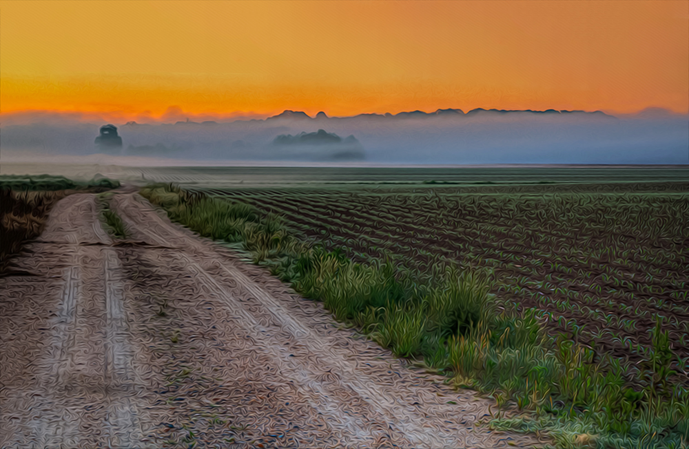 Farm Road Fog 05/11/2012 Oil Paint Rendered — Yadkin River Valley, Dinkins Bottom, Yadkin County, North Carolina