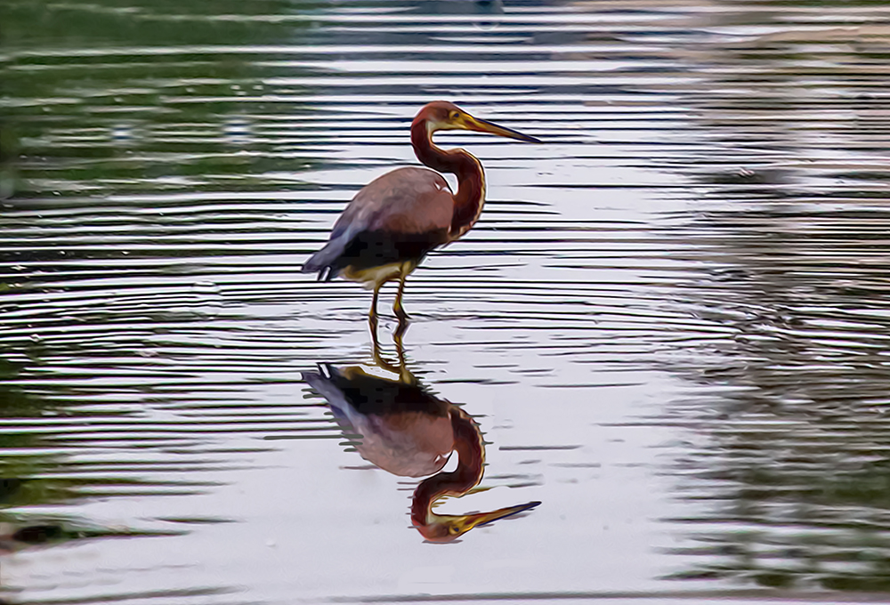 Tri-colored Heron Reflection 08/30/2013 — The Bog Garden, Greensboro, North Carolina