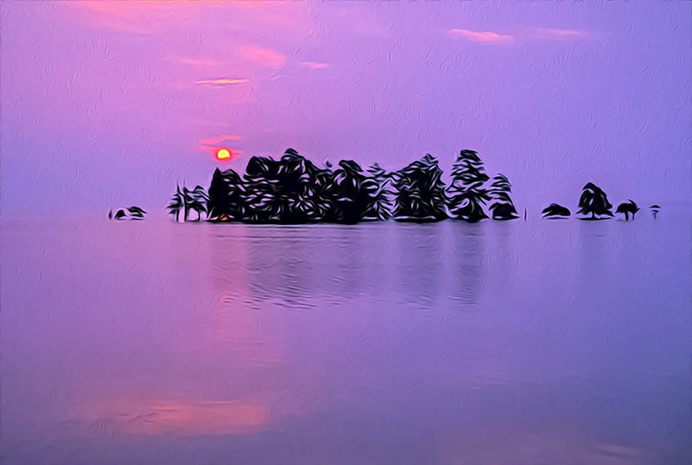 Lake Mattamuskeet Sunrise 07/20/2006 Oil Paint Rendered — Mattamuskeet, North Carolina