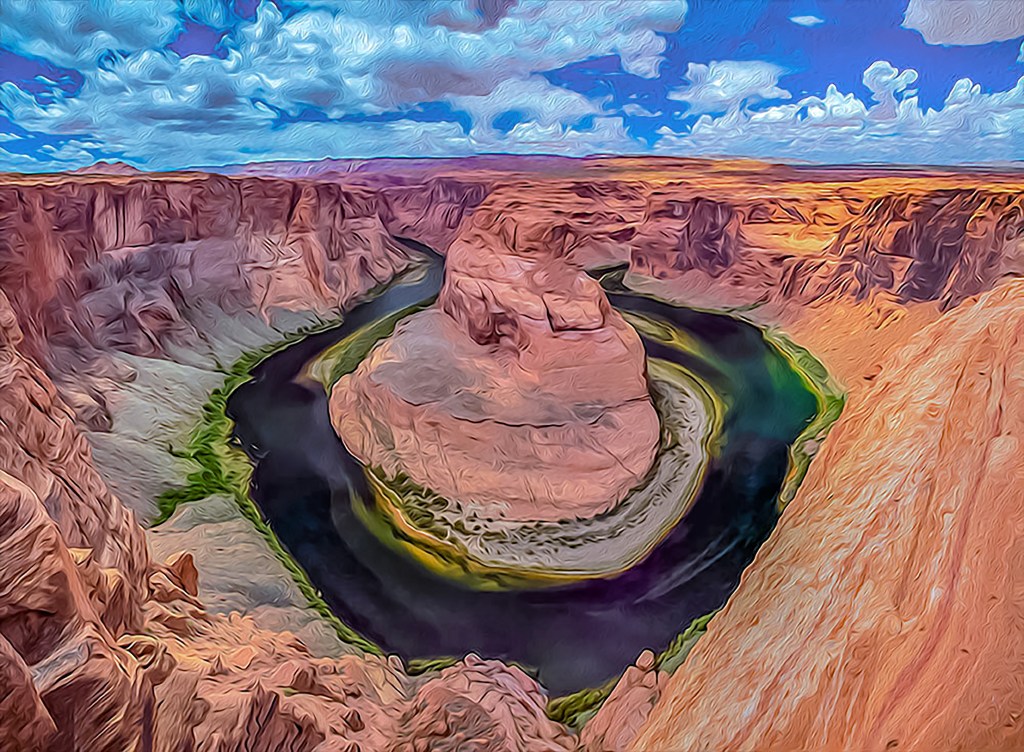 Horseshoe Bend Panorama 03 05/23/2010 Oil Paint Rendered — Page, Arizona