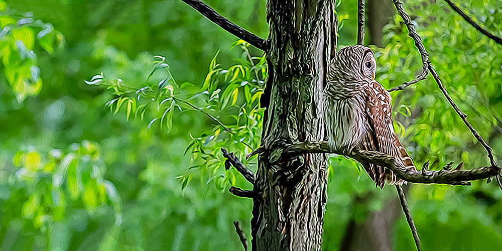 Far Away 05/06/2013 Oil Paint Rendered — Barred Owl at the Bog Garden, Greensboro, North Carolina