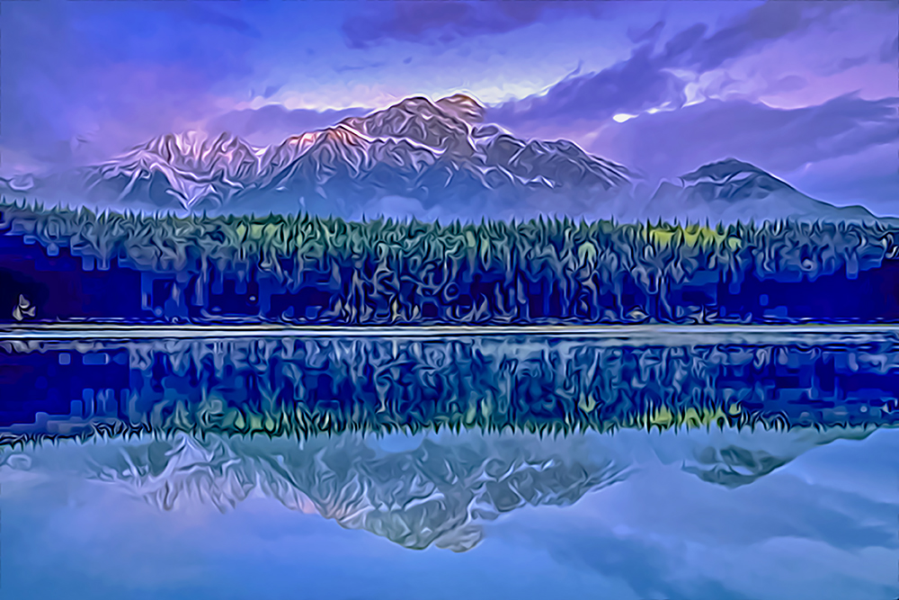 Patricia Lake Reflection 09/22/2007 Oil Paint Rendered — Jasper National Park, Canadian Rockies, Alberta