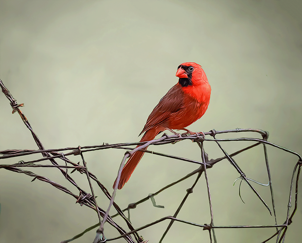 Redbird on a Fence 05/30/2016 Oil Paint Rendered — Scenes from My Hammock, 22-acre Woods, Indian Land, South Carolina