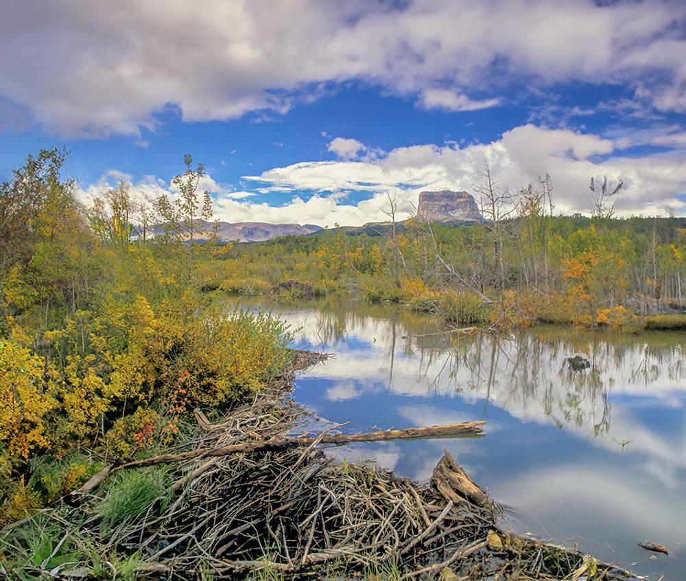 While not the highest peak in Glacier, at 9080 feet, Chief Mountain stands ahead of the other mountains on the eastern edge of the Rockies and looks out over the plains. It can be seen for over a hundred miles away. Lying half in Glacier, half in the Blackfeet Reservation to the east, and just under 5 miles from the border that passes through the Peace Park, the mountain transcends boundaries. For people of the Blackfoot Confederacy, which includes tribes in the US and Canada, Chief Mountain has helped define their territory for millennia. The prominence and visibility of the mountain provided guidance, shelter, and a landmark for travelers. Named “Ninaistako” by the Blackfeet, the mountain holds great power and ancient knowledge. Use of the mountain for ritual and ceremonial purposes goes back thousands of years. It is a sacred area. Chief Mountain is considered the oldest spirit of any of the mountains and creation stories of the Blackfeet are linked to it.