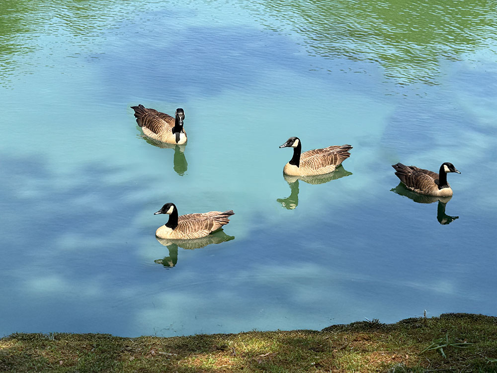 These geese are so still because I have become a person of interest for them. They are hoping for some bread to be tossed their way.