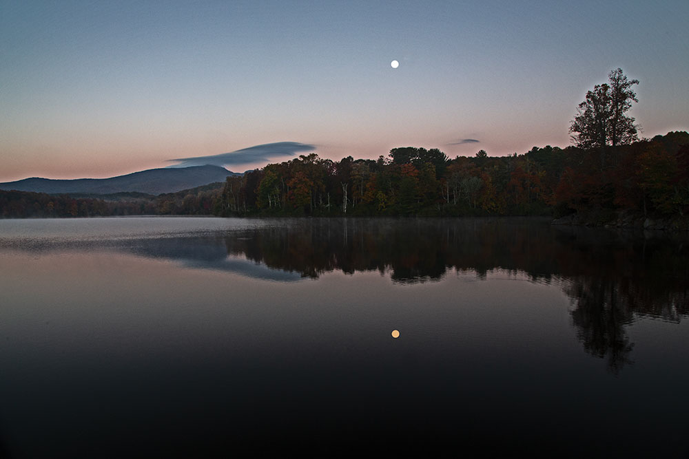 The Moon and Price Lake, 10/17/2016 — Blue Ridge Parkway, Blowing Rock, North Carolina, Julian Price Memorial Park