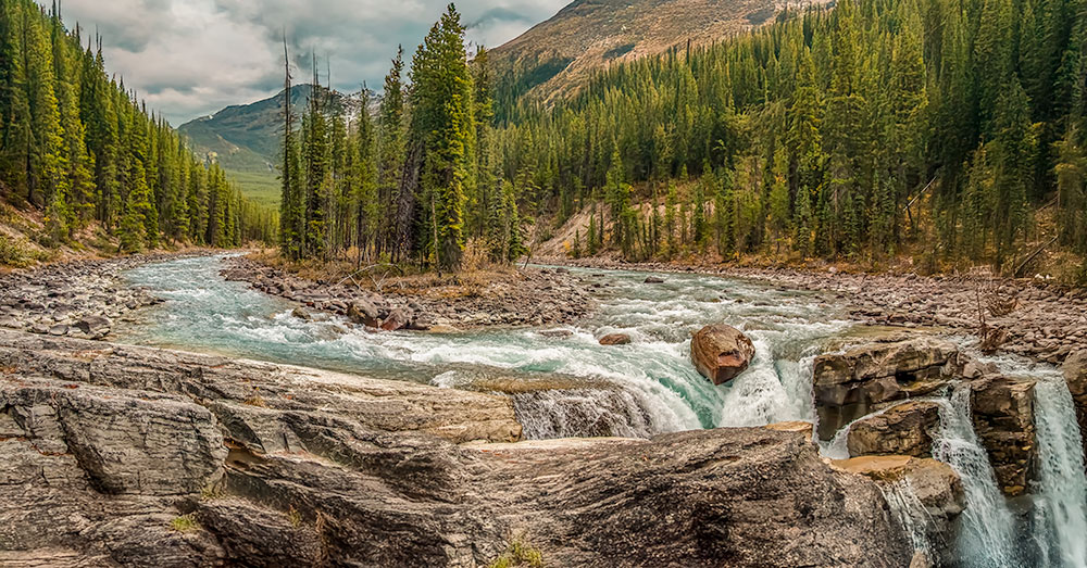 Sunwapta River and Falls — Jasper National Forest, Canadian Rockies, Alberta