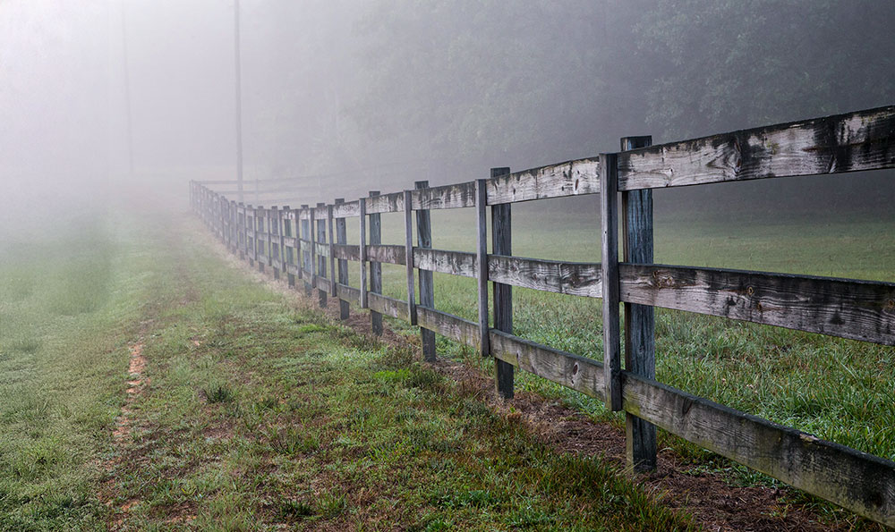 Fence in the Fog — Six-mile Creek Road, Indian Land, South Carolina