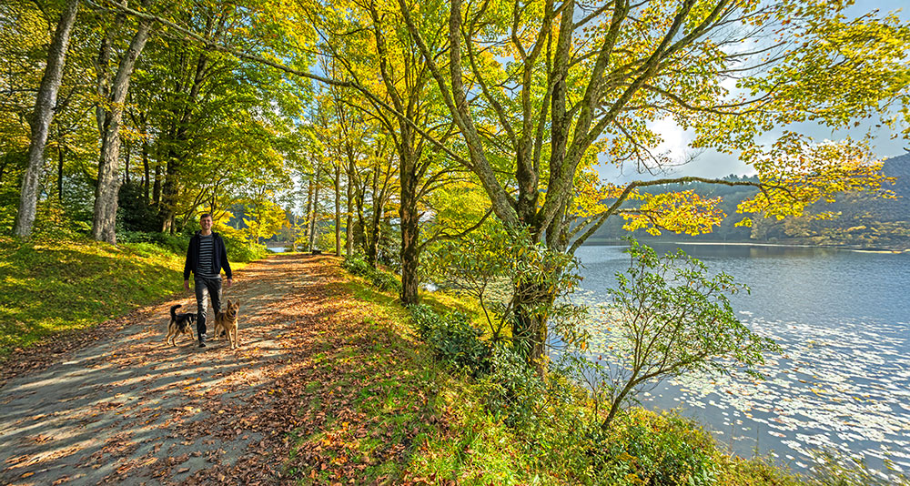 A Man and Two Dogs — Bass Lake, Blue Ridge Parkway, Blowing Rock, North Carolina