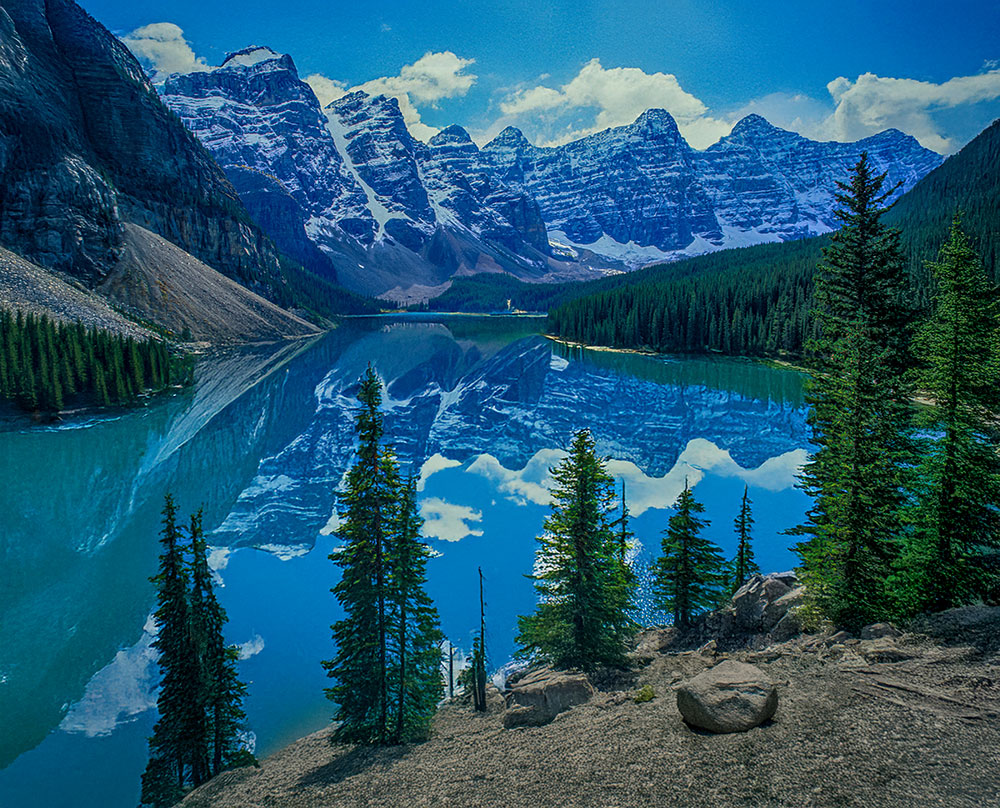Moraine Lake Mirror — Banff National Park, Alberta –This image was made with Photoshop’s Generative Fill Filter to create the reflection