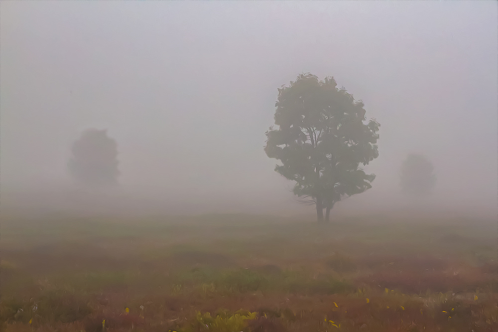Three Trees in the Fog 09/26/2011 Oil Paint Rendered — Skyline Drive, Shenandoah National Park, Virginia